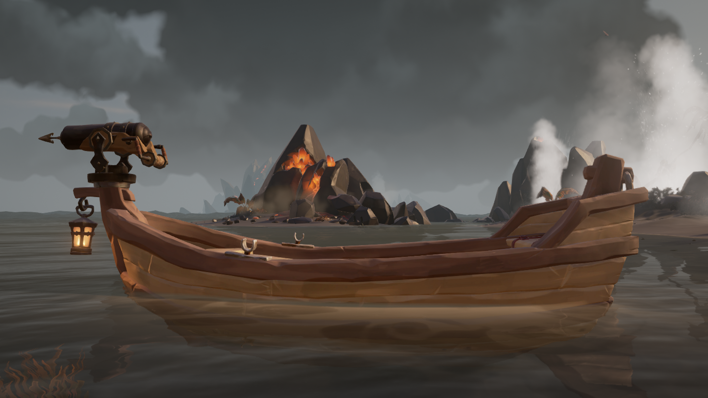 Algunos botes de remos aparecerán con un arpón colocado sobre el farol de la parte delantera, lo que permitirá recoger objetos o barriles flotantes, otros jugadores o agarrarse y navegar detrás de barcos, barcos de esqueletos o incluso megalodones.