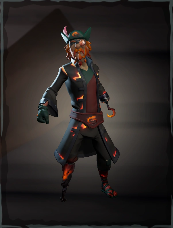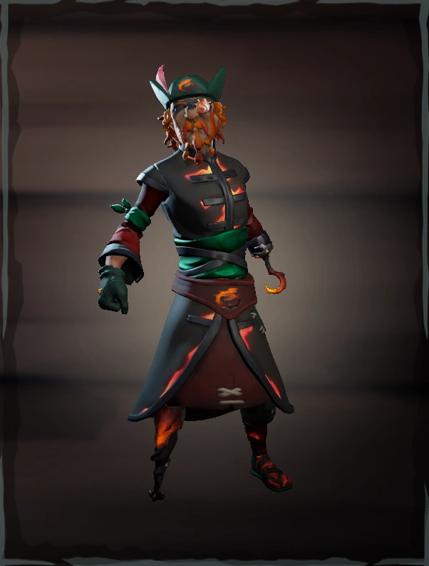 The set features an Oriental aesthetic with a red, green, and orange colour palette and a motif of dragons, fire, and ash. Each of the set's items have a fiery glow to them, easily seen at night. Items were released in parts after The Seabound Soul (Content Update) and ending with the Heart of Fire (Content Update), with many of them being locked behind either Bilge Rat or Tall Tale Commendations. The Set also features The Ashen Curse, which can also be found on the set's Collector's Pets.