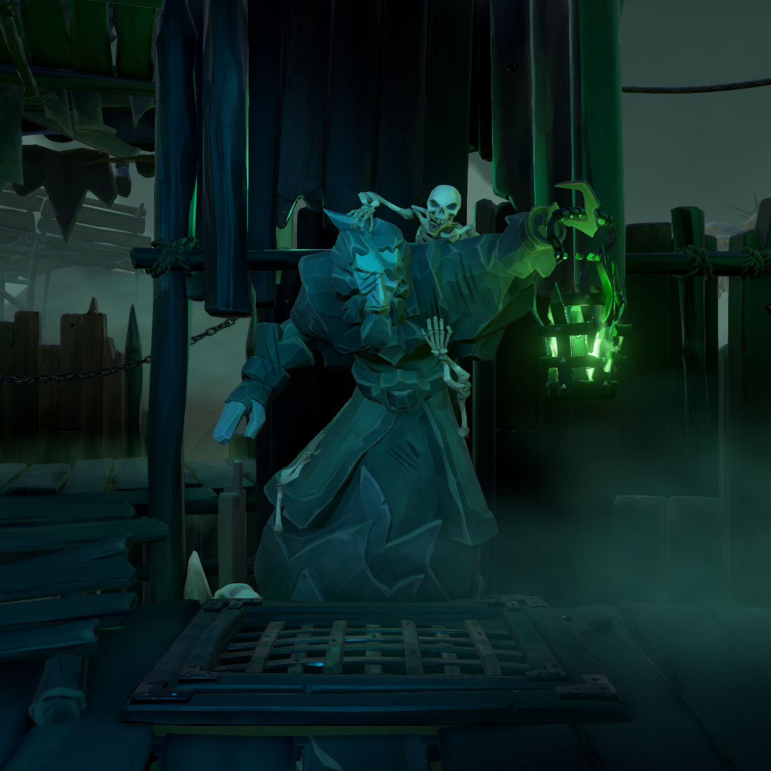 The Ghost of Graymarrow will spawn as a Skeleton Lord fight. This Ghost attains the same abilites as Graymarrow, who is tougher than in his corporeal form. However he notably has no teleportation ability and summons Shadows of Fate reinforcements, instead of normal skeletons. As of Season 9, his health scales depending on the total number of ships present but not the amount of crew members. Once the Ghost of Graymarrow is defeated, the Fort Raid will be complete, the Skull Cloud will disappear and a Fort of the Damned Key will be dropped by the boss. The location of the Fort of the Damned Key can be tracked on a Map Table