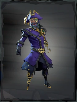 The Legendary Set is a Cosmetic Set devoted to the Pirate Legends of Athena's Fortune in Sea of Thieves. The Set mainly features rich Purple tones adorned with Gold and the Jade Reaper's Mark modeled after the Pirate Lord's necklace.